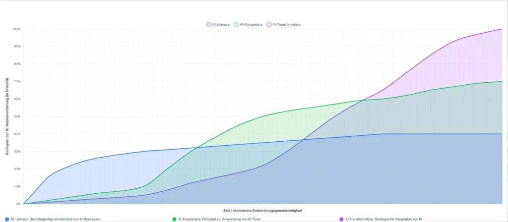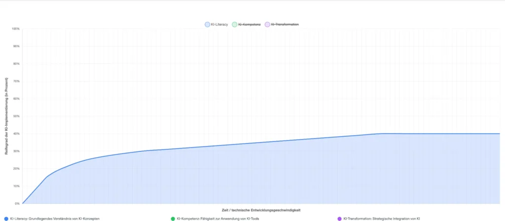 KI-Literacy bildet die Grundlage. Es ist vergleichbar mit den Verkehrsregeln, die wir kennen sollten, bevor wir Auto fahren. Sie ist der erste Schritt und bleibt während des gesamten KI-Reifeprozesses relevant.